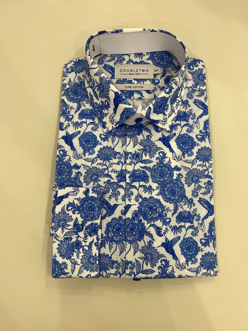 DOUBLE TWO WHITE SHIRT WITH BLUE HUMMINGBIRD PRINT