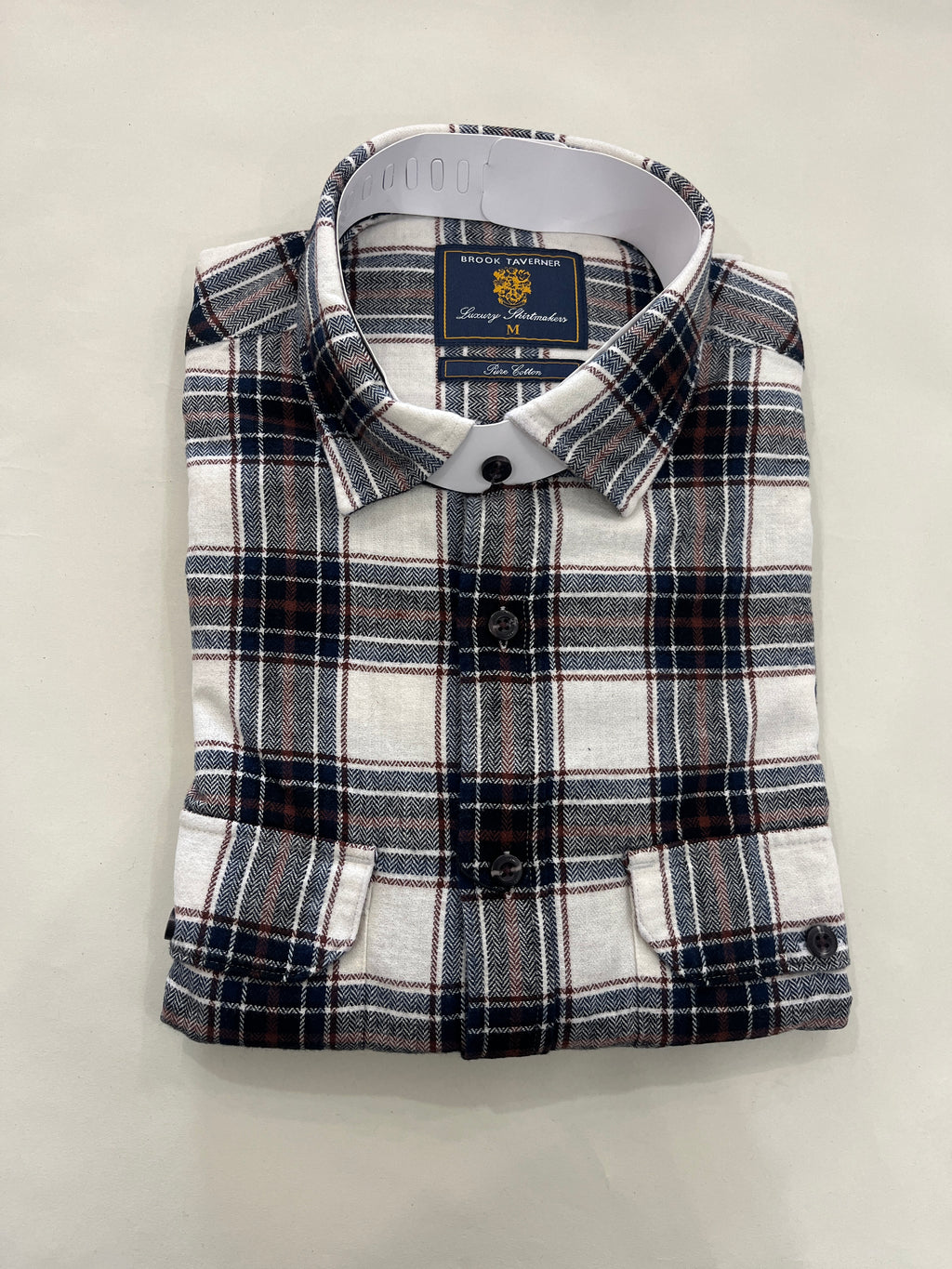 BROOK TAVERNER ECRU CHECK BRUSHED COTTON SHIRT